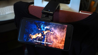 On planes, I like to latch the holder onto the pamphlet pocket on the back of the seat in front of me. This lets me position my phone directly in front of my face for comfortable viewing. I’ve done the same on buses, trains, and even in cars. It’s surprisingly versatile.